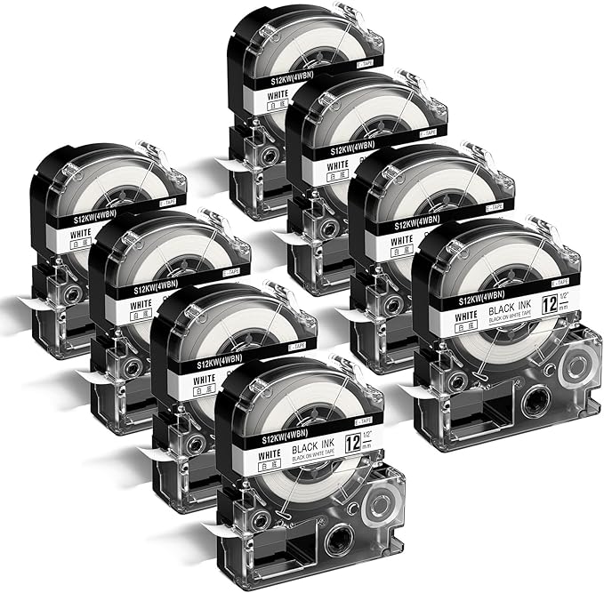 - Packages: 8x LK-4WBN SS12kw Labeling Tape Cassette 12mm 1/2" Replacement for Epson LC4WBN LK4WBN SS12KW 12mm black on white Tape. Color: Black on White. Size: 1/2 inch x 26 feet (12mm x 8m)