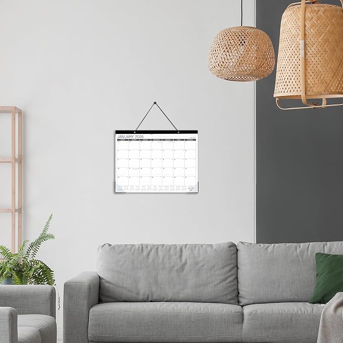 - π2-IN-1 FEATURES - 2 clear corner protectors and hanging holes make it a good for wall hanging. It also works as a 2026 desktop calendar, a 2026 calendar planner or desk pad, a great tool for long term planning. Clear corners keep pages flat on desk or wall.
