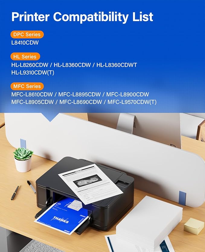 - To use with: Compatible for Brother HL-L8260CDW, HL-L8360CDW HL-L8360CDWT,HL-L9310CDW(T) MFC-L8610CDW, MFC-L8895CDW MFC-L8900CDW, MFC-L8905CDW MFC-L8690CDW,MFC-L9570CDW(T) DCP-L8410CDW Laser Printer.