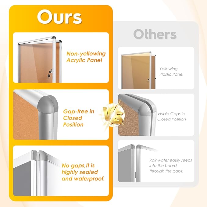 - 📌 Premium Cork Board — Lockable bulletin board is made from dense and high-quality cork that self-heals after pin use, keeping the surface smooth, clean, and ready for repeated posting