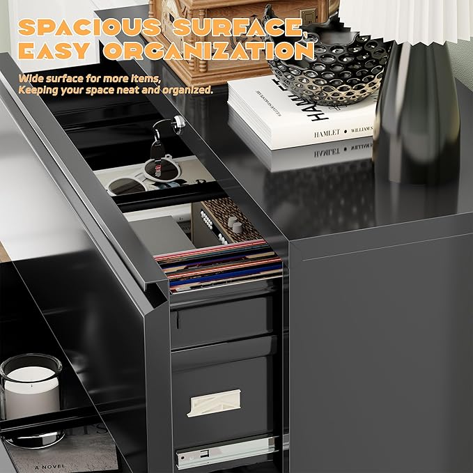 - ❤ Smooth & Quiet Operation -- The black file cabinet have smooth rolling bearing drawers, the drawers open and close effortlessly without jamming or noise. The sound produced when pulling the drawer is below 20 dB, which can create a quiet working environment for you.