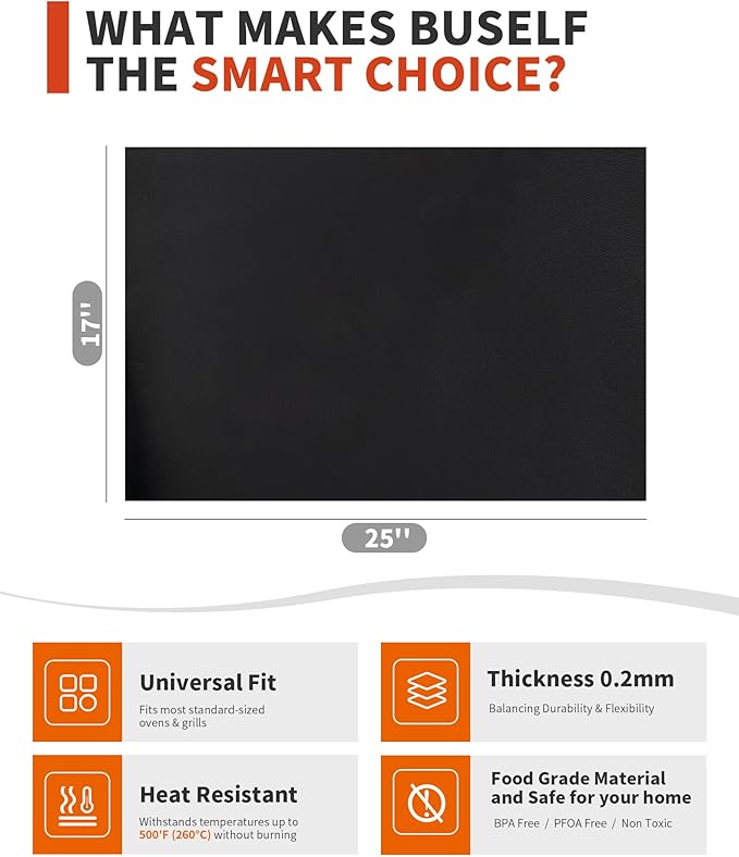 - Safe & Non-Stick Surface – Crafted from heat-resistant fiberglass PTFE, our oven mat withstands up to 500°F while keeping your electric or gas oven spotless.