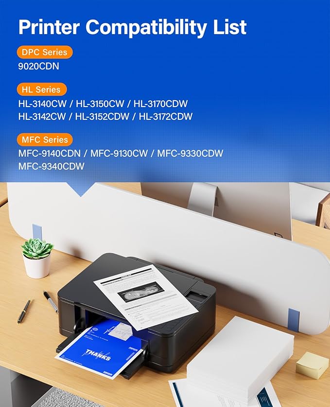 - To use with: Compatible for Brother HL-3140CW, HL-3150CW, HL-3170CDW,HL-3142CW, HL-3152CDW, HL-3172CDW,DCP-9020CDN,MFC-9140CDN, MFC-9130CW,MFC-9330CDW, MFC-9340CDW Laser Printer.