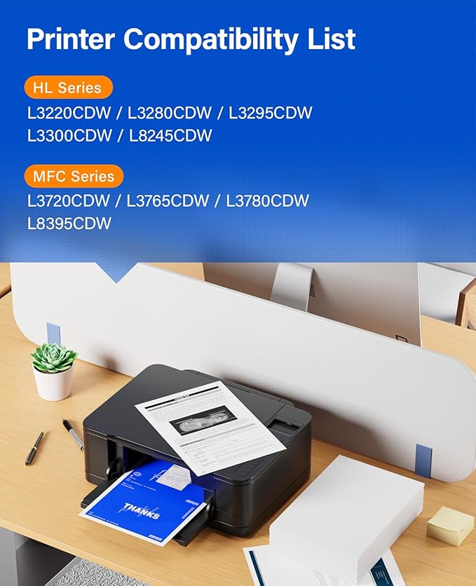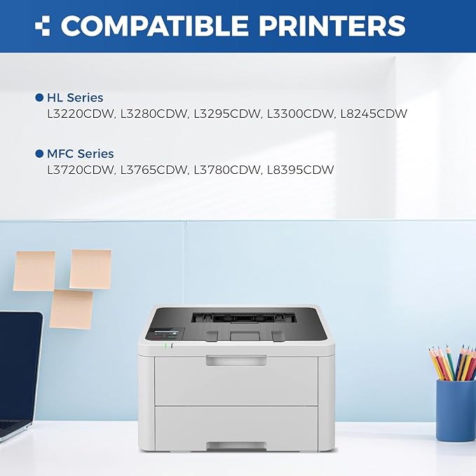 - To use with: Compatible for Brother HL-L3220CDW, HL-L3280CDW, HL-L3295CDW, HL-L3300CDW, HL-L8245CDW, MFC-L3720CDW, MFC-L3765CDW, MFC-L3780CDW, MFC-L8395CDW Laser Printer.