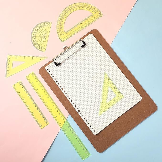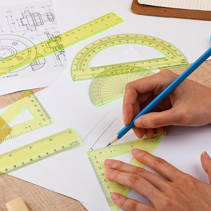 - Complete math tool set: you will be provided with 2 protractors of 15.5 cm and 10 cm, 2 triangle rulers of 45 degree and 60 degree, 2 straight rulers of 6 inch/ 15 cm and 12 inch/ 31 cm, totally 6 pieces; The complete combination meets the needs of various occasions, you can choose the right ruler to work according to your needs