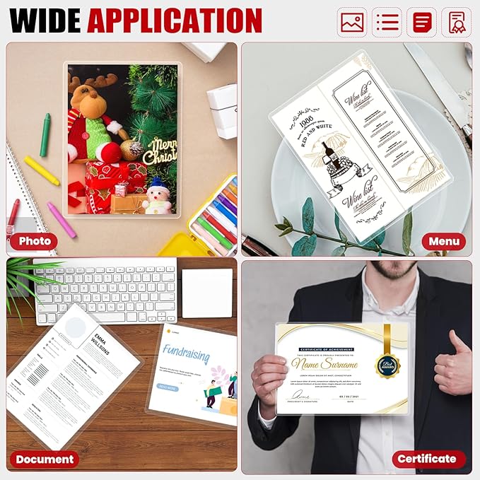 - Application:Perfect for protecting certificates,signs,photos,awards,calendars,kids artworks.It can seal and protect your documents it can be used in classroom, home and office.Compatible with all thermal laminator machine brands