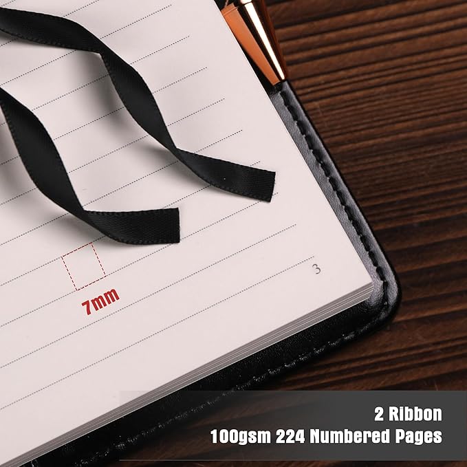 - 100 GSM 224 Numbered Pages: TIEFOSSI lock journal has 224 numbered pages, using 100 gsm thick paper, writing is not easy to bleed through the ink, the date at the top of each page and the page numbering allow you to plan wisely, the notebook also has two ribbons and a pen pocket.