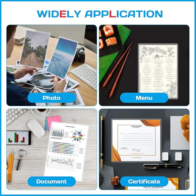 - Application:Perfect for protecting certificates,signs,photos,awards,calendars,kids artworks.It can seal and protect your documents it can be used in classroom, home and office.Compatible with all thermal laminator machine brands