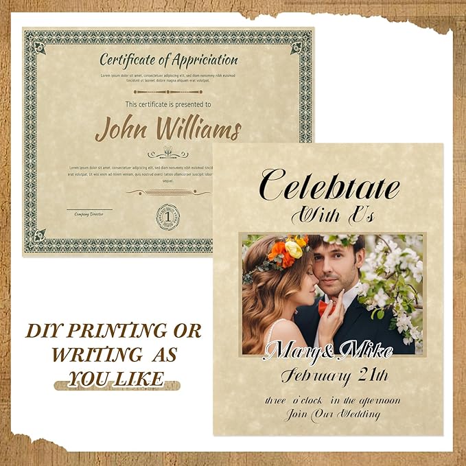 - Work As Different Things: these plain certificate papers are flexible in use, you can use them as certificate printing, wedding invitation, birthday invitation, restaurant menu, theme party decoration and so on, running smoothly in laser and inkjet printers, copiers and offset applications without jams