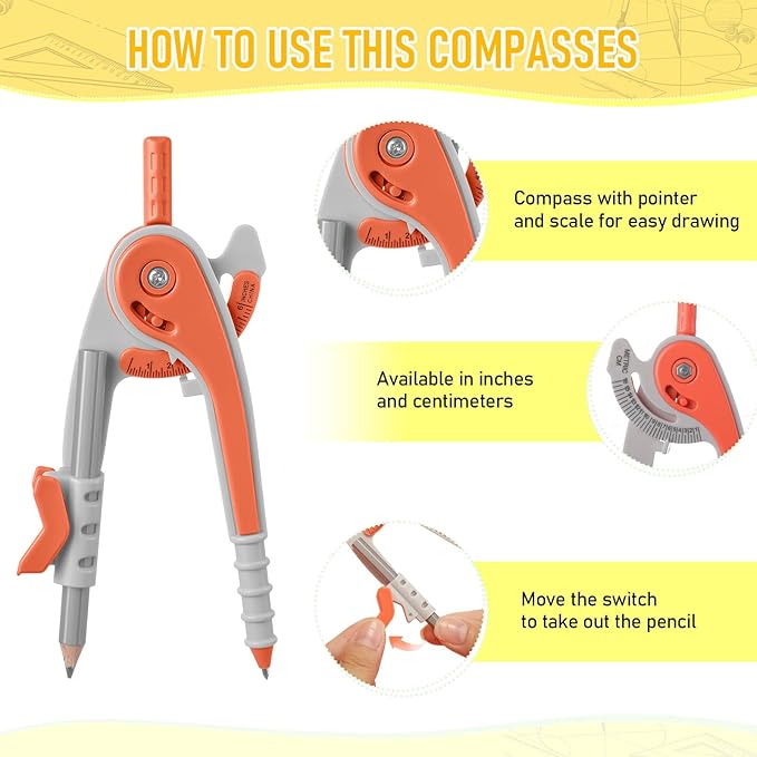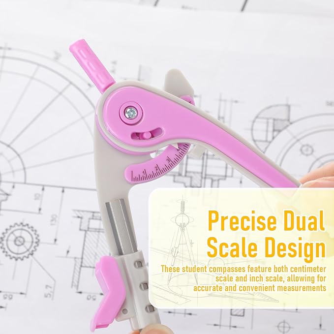 - Precise Dual Scale Design: these student compasses feature both centimeter scale and inch scale, allowing for accurate and convenient measurements; The design is suitable for geometry and math students who need to create circles, arcs, and angles for geometric shapes and calculations, making these compasses an essential tool for any math classroom