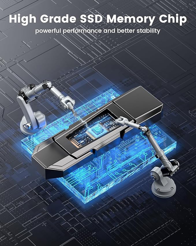 - 2-in-1 Dual USB-C&Type-A Drive: Built with both Type-C and USB-A ports, this dual USB solid state flash drive works seamlessly with iPhone 16/15 Series, Android phone, tablet, laptop, Mac, car audio, gaming consoles and more, transfer files effortlessly between devices.