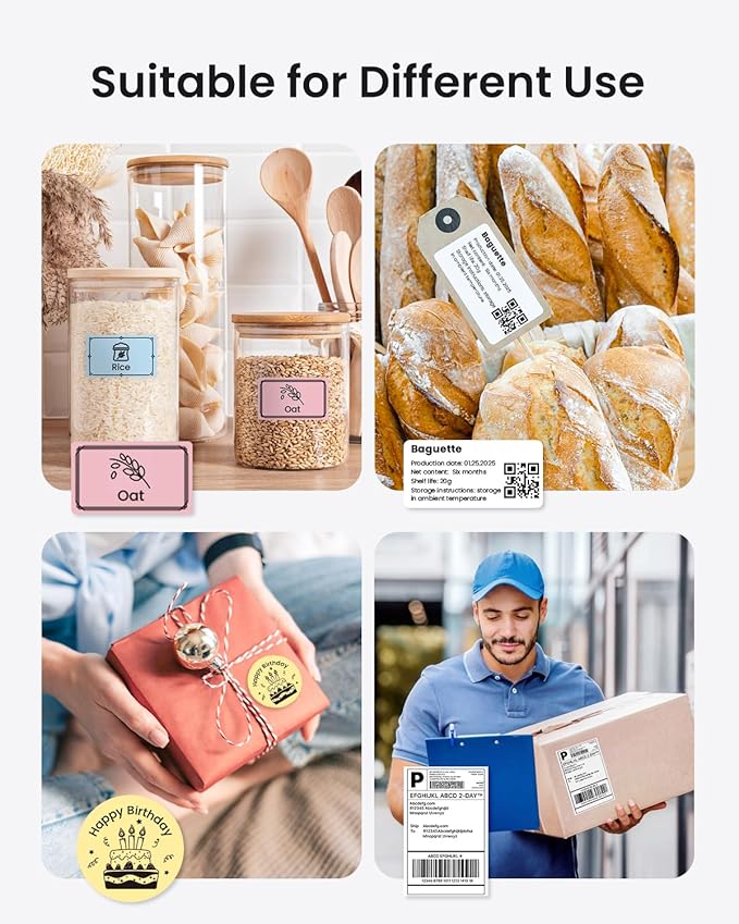 - Wide Usage: The thermal printer is widely used for printing labels from various marketplaces and shipping platforms, such as Amazon, eBay, ShipStation, ShippingEasy, Shopify, UPS, FedEx, USPS, Shippo, etc. (Note: Please remember to download the 4×6 inch label to be printed on the corresponding platform before printing, then upload it to the editor app "Labelnize" for printing). Use this Bluetooth shipping label printer to print shipping labels, warehouse labels, helping you increase productivity