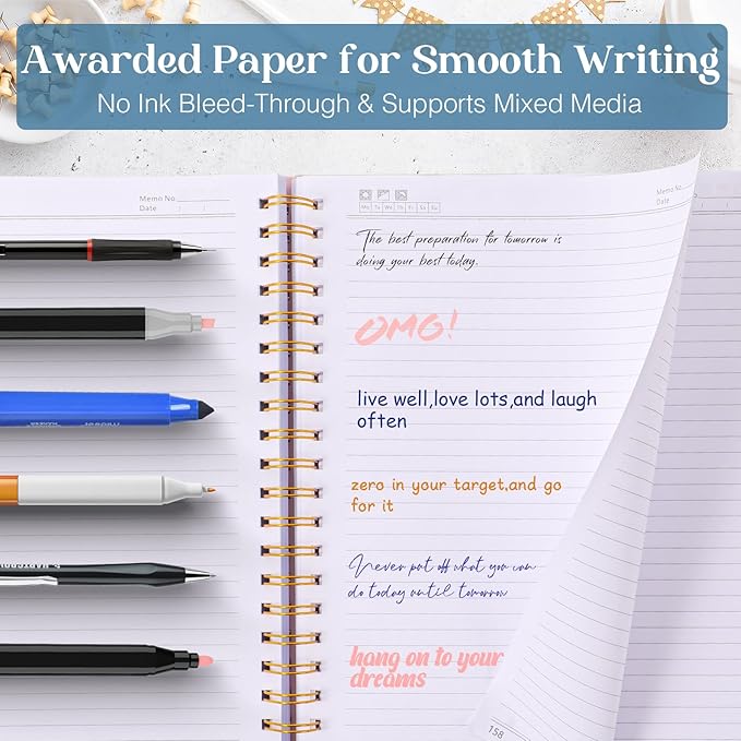 - 【Smooth Writing, No Bleeding】Enjoy a premium writing experience with award-winning paper, gentle on the eyes and noticeably thicker than most notebooks on the market. Say goodbye to ink bleed-through and ghosting with fountain pens and markers—every page stays clean and crisp. The large A4 lined notebook (8.5" × 11") with standard college ruled spacing provides generous room, and you’ll never feel cramped when jotting notes, sketching, or planning in detail.