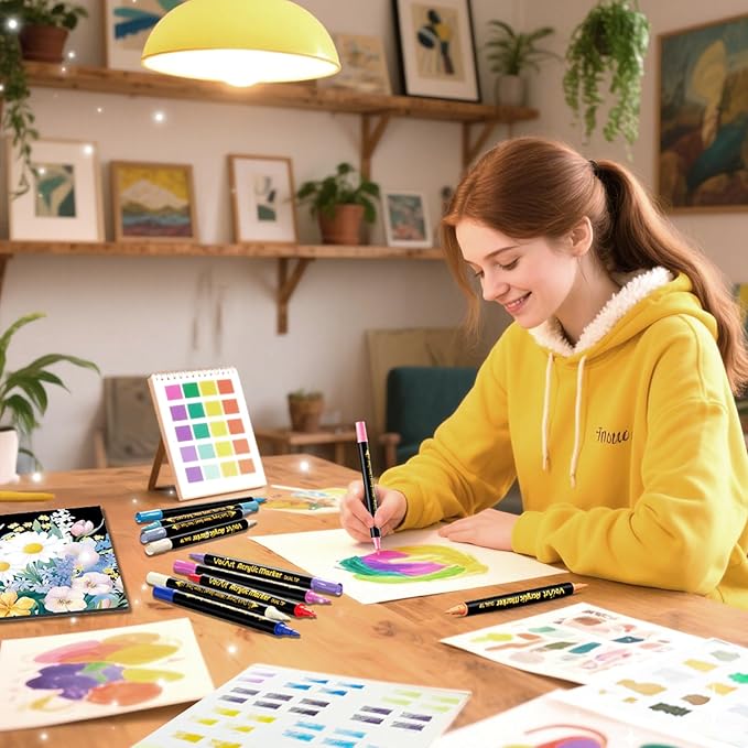 - Ideal for All Skill Levels – Whether you're a beginner, student, 3+ kids, or professional artist, these acrylic brush markers are easy to use for crafting, school projects, and commercial designs.