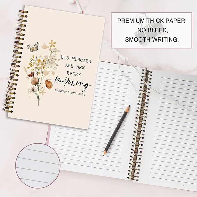 - 2.Bible Journaling Hardcover Spiral Notebook The notebook has a double spiral design, the sturdy spiral binding allows the notebook to lay flat, making it easy to write on both sides of the page. made of thick paper, prevents ink from leaking, safe, easy to write