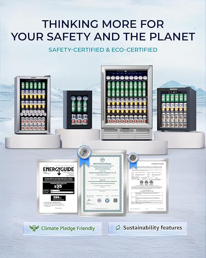 - 【Superior Cooling Performance】Experience premium chilling with this sleek drink fridge! Features a double-layer glass door for superior insulation and visibility. Equipped with an advanced R600a compressor and 360° cooling for stable temperatures and reduced frost. Ideal as a quiet, efficient mini fridge for office, lounge, or home use.