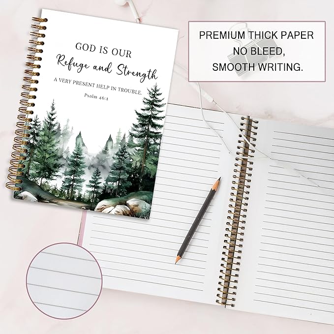 - 2.Bible Journaling Hardcover Spiral Notebook The notebook has a double spiral design, the sturdy spiral binding allows the notebook to lay flat, making it easy to write on both sides of the page. made of thick paper, prevents ink from leaking, safe, easy to write