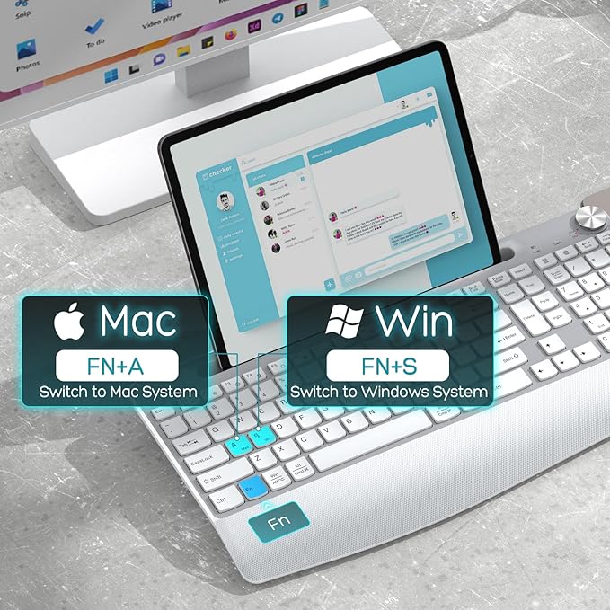 - 【Windows/Mac OS Dual System & 2.4G Stable Wireless Connection】This wireless keyboard and mouse is equipped with Windows/Mac OS dual systems, you can use Windows or Mac keyboard layouts depending on your devices system.Simply connect both keyboard and mouse with the same USB receiver. It's easy to install, plug and play, and you will not experience any connection or lag issues! Powerful and reliable connection range is up to 10 meters(33ft)