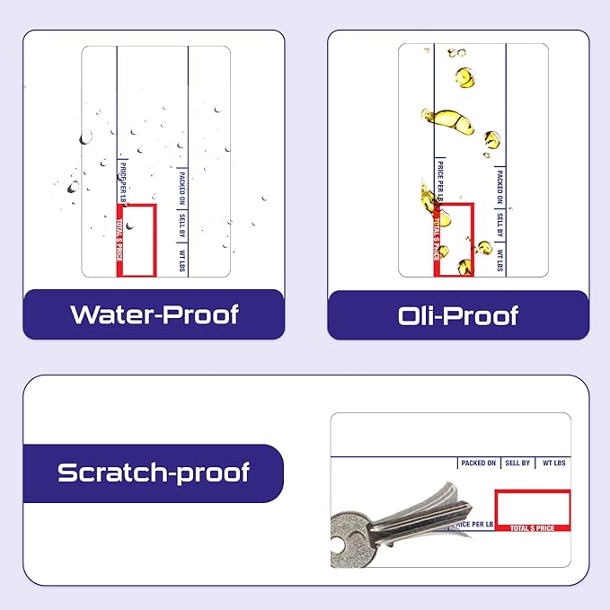 - STRONG ADHESION & TEMPERATURE RESISTANT: With an industrial-grade adhesive and weather-resistant coating, these upc labels stay firmly in place in hot, cold or humid conditions. Whether used in a freezer, kitchen or warehouse, they remain legible and durable for reliable performance.