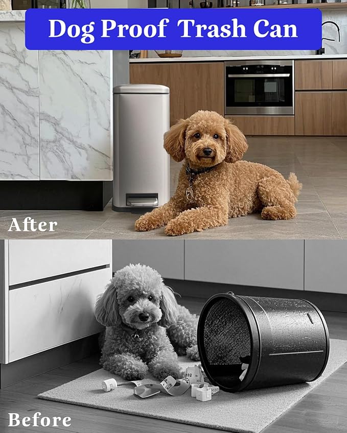 - Removable Inner Bucket Design: The bathroom trash can with lid come with a removal inner bucket, make cleaning a breeze. The bucket has a stainless steel handle. You can easily lift the inner bucket, dump the trash, and rinse quickly when needed.