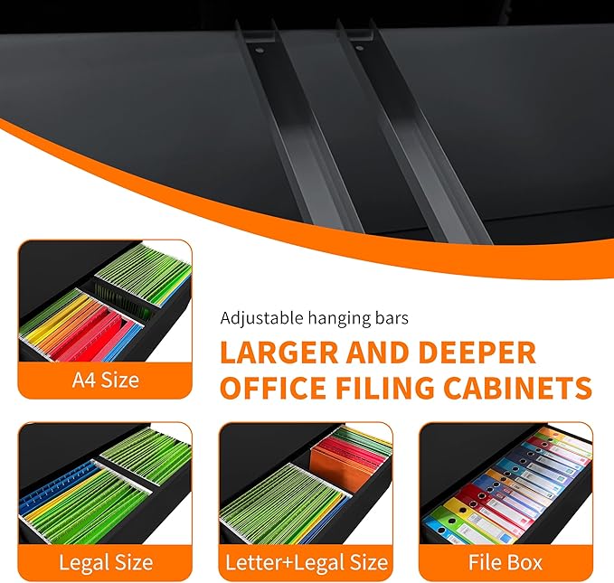 - 【Unique Design】 The steel file cabinet features precision ball bearing full suspension slides, ensuring silent and smooth opening and closing of the drawers. With a full extension drawer design and humanized handles, this locking cabinet offers convenient and effortless functionality.