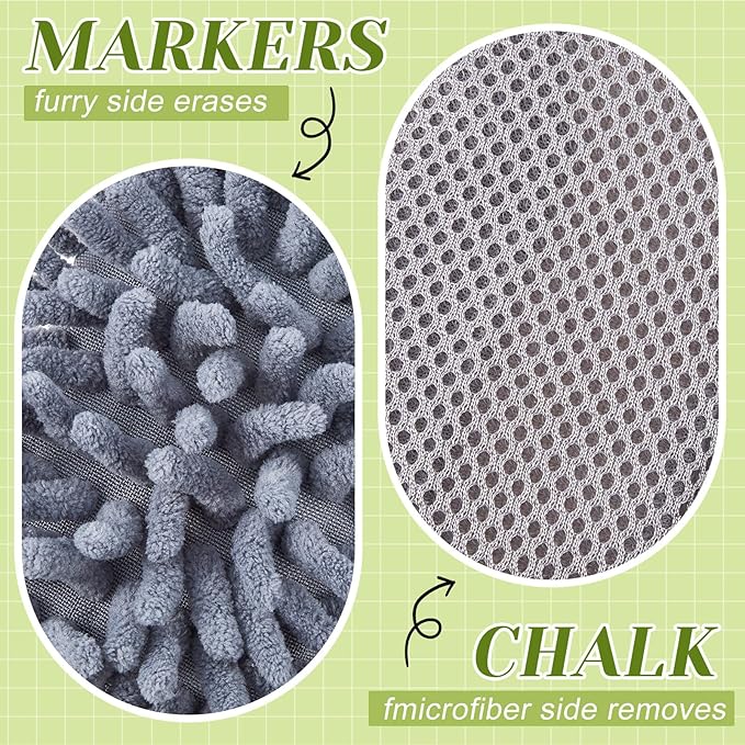 - Effective Erasing: the microfiber surface of the dry board eraser easily removes most dry erase ink from any dry erase board, while the furry side erases chalk, no liquid cleaners needed; Dual side design is convenient and effective to erase without damaging the writing surface
