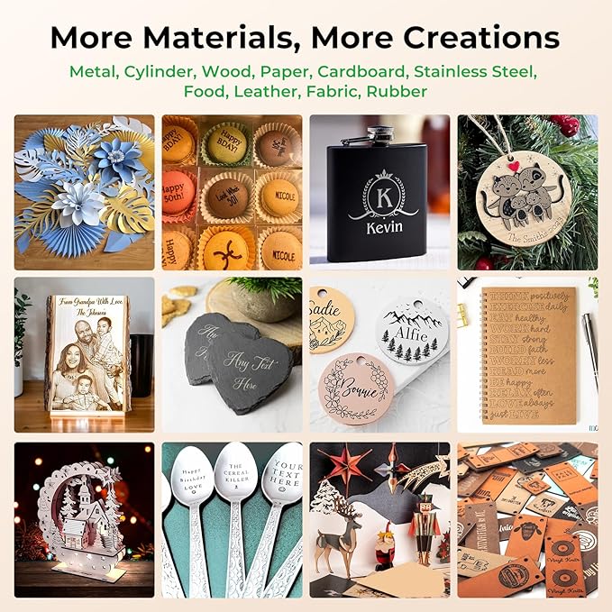- 【Enhanced Productivity】The laser cutter machine equipped with advanced 32-bit chip, can achieve faster engraving speed up to 10,000 mm/min, which leading the way than many machines on the market, enabling high-volume tasks without compromising precision.