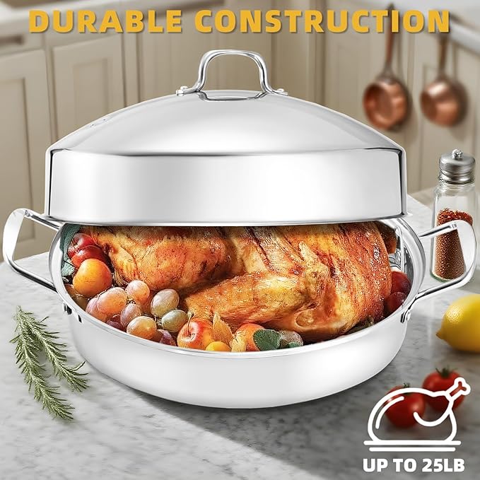 - 【Great Gift for Mom & Dad】This Large Roasting Pan—a versatile Oval Turkey Roaster Pan and durable Stainless Steel Roasting Pan with Rack—combines practicality, sturdiness, and elegant stainless steel styling. It’s an excellent gift for parents on Thanksgiving Day, Mother’s Day, Father’s Day, or housewarmings, simplifying holiday cooking and everyday meals as a cherished kitchen essential.