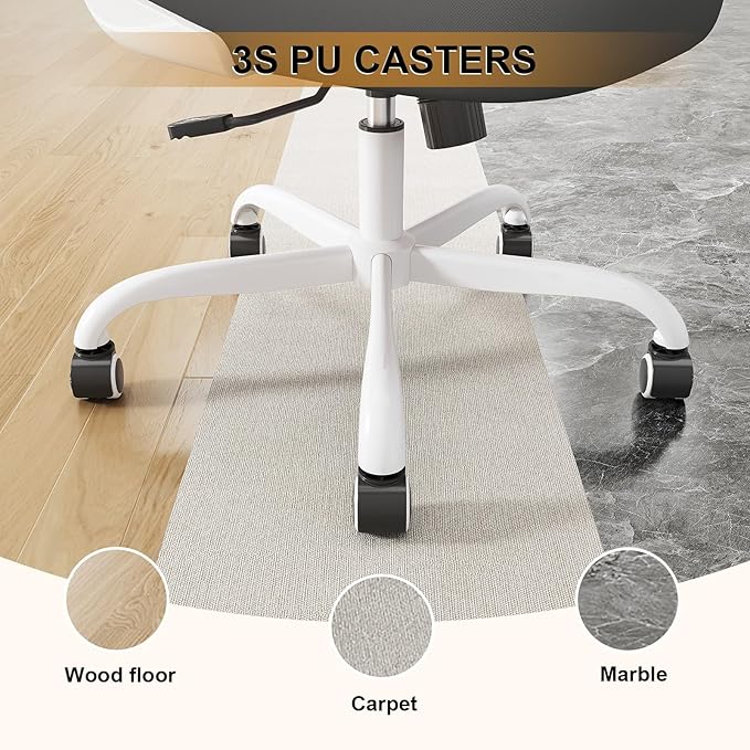 - BREATHABLE MESH AND LUMBAR SUPPORT: The seat’s cushion of the mesh computer chair is made of 3-inch thick high-density foam that stays quite comfortable even after sitting for long hours. The mesh back allows air to flow through which helps you keep cool during the workday, you won't feel stuffy or sweat. Lumbar support is adjustable in 3 heights to accommodate the natural curvature of the spine, relieving back pain when sitting at a desk using a computer all day