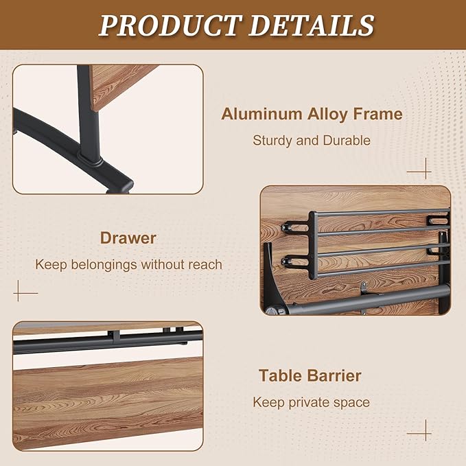 - 【Practical Drawer and Silent Wheels】Our folding conference room table has a open drawer which can make your belongings without reach. Also, this training table with metal frame is equipped with high-quality mute wheels which can rotate 360°. Besides, its brake secures the boardroom table stay in place during meetings.