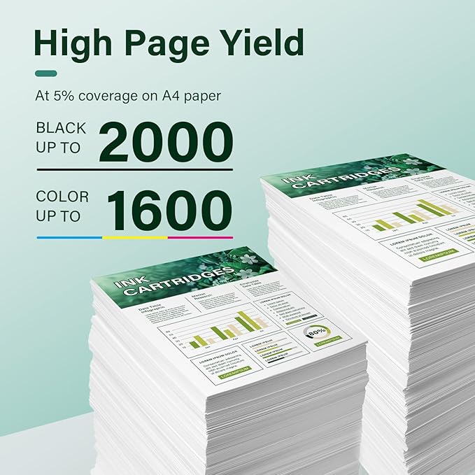 - High Page Yield: 962XL ink cartridges combo pack yields up to 2,000 pages for each 962XL Black Ink,and 1,600 pages for each 962XL Color Ink,at 5% coverage (A4e letter)