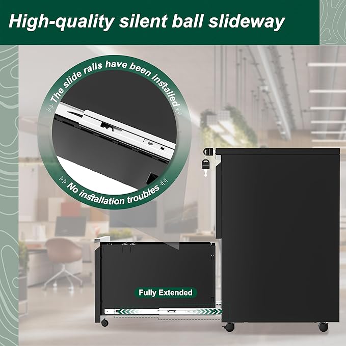 - ❤Lockable File Cabinet -- Superday file cabinet uses an interlocking system, it locks all two drawers simultaneously and comes with two keys to protect your privacy and file security.Tips: 2 keys should be kept separately in case of losing. If you accidentally lose one key, another key can be used in case of emergency.