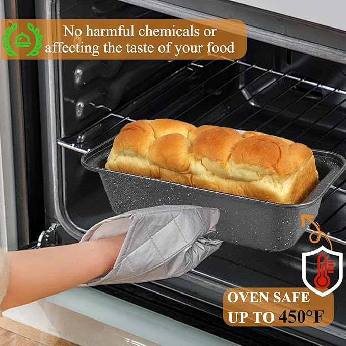 - HEALTHY & EASY TO CLEAN NONSTICK COATING - Made with safety first! Our bread baking pans feature a premium PFOA-Free, BPA-Free, and PTFE-Free nonstick coating. This ensures effortless food release and quick, hassle-free cleaning without any harmful chemicals. The smooth surface makes these small bread pans for baking a dream to use and maintain, simply hand wash with warm soapy water.