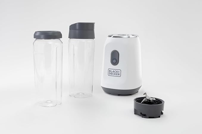BLACK+DECKER® Ice Crush Single Serve Blender with Pulse/ON Button, Base, Two 20oz Personal Blender Jars, Blade Assembly, Travel Lid, White